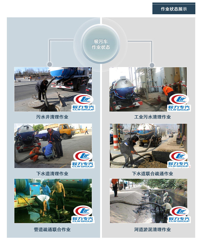 程力專(zhuān)用汽車(chē)公司生產(chǎn)的清洗吸污車(chē)系列主要功能是為城鄉(xiāng)環(huán)衛(wèi)部門(mén)管道疏通,抽吸和運(yùn)送糞便、淤泥、石子及其它混有較大懸浮雜物的液體。特別適合用于下水道內(nèi)的淤積物的疏通,抽吸、裝運(yùn)和排卸,尤其是可吸下水道中的石子、磚塊等較大物體及疏通任何堵塞的下水道。排放有加壓排放和自流排放兩種方式。清洗吸污車(chē)具有疏通、抽吸效率高、自吸、自排及直灌等特點(diǎn),操作快速、簡(jiǎn)便。適宜于大、中、小城鎮(zhèn)環(huán)衛(wèi)、市政部門(mén)使用。